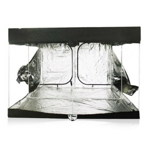 `Un armario de cultivo con un interior reflectante diamond y diversas ventanas que se cierran con velcro, para sistemas de riego y de Co2.