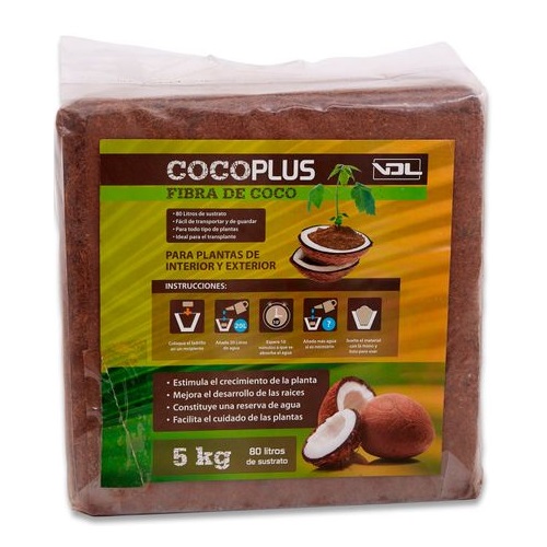 `Ladrillo de Coco VDL, este producto es de gran calidad y ha sido sometido a un tratamiento con aguas de manantial para conseguir bajar la CE hasta niveles ínfimos. Totalmente natural, producido a base de cáscara de coco. Se usa como sustrato único para cultivo hidropónico o como parte de una mezcla, mejorando la estructura física del sustrato.